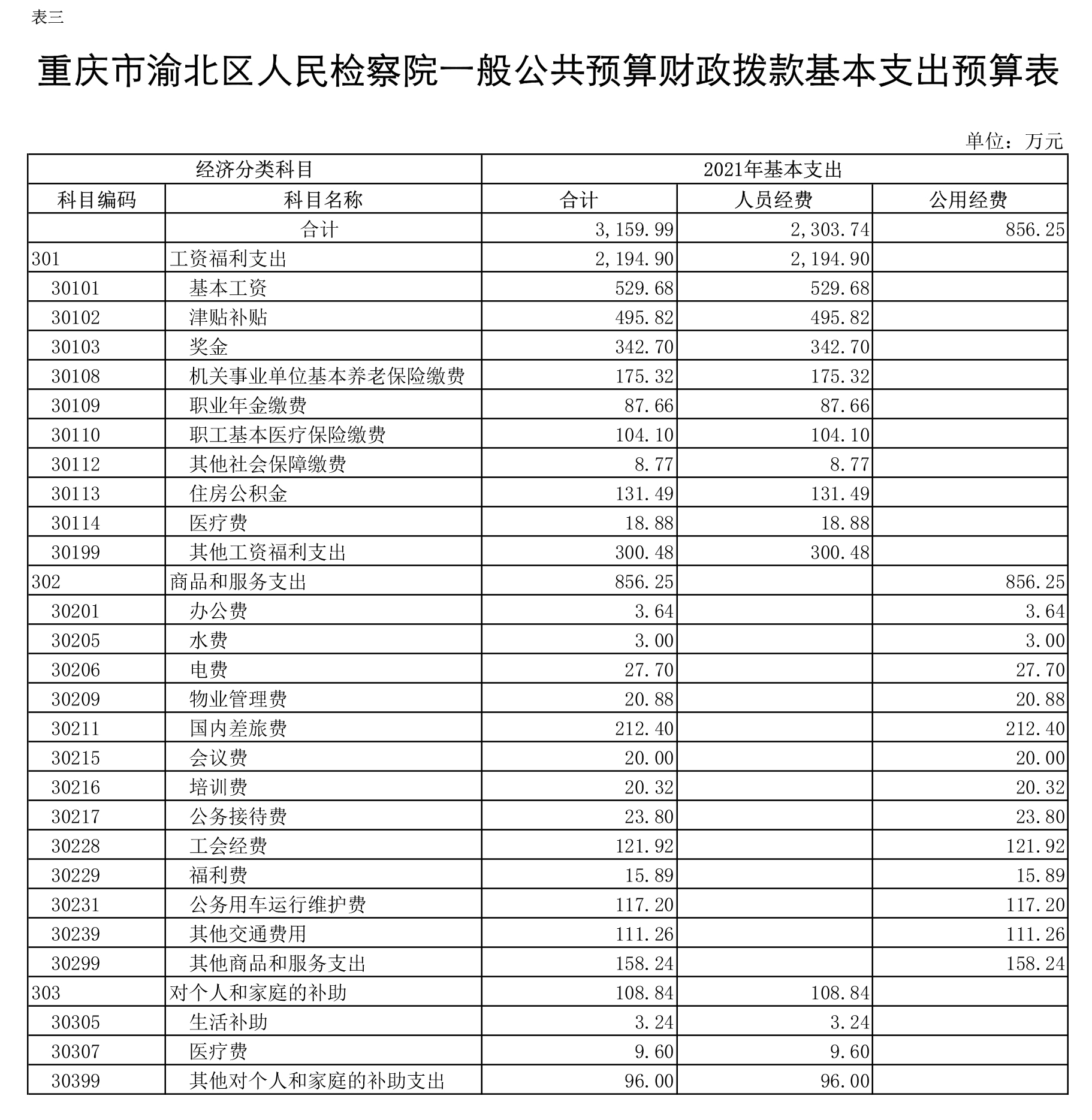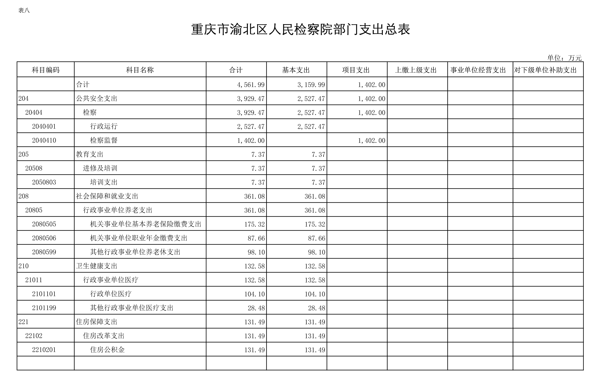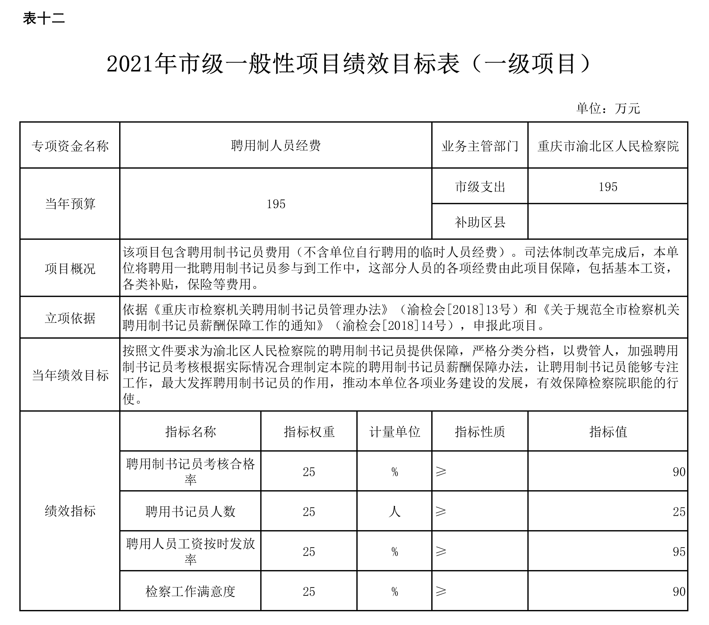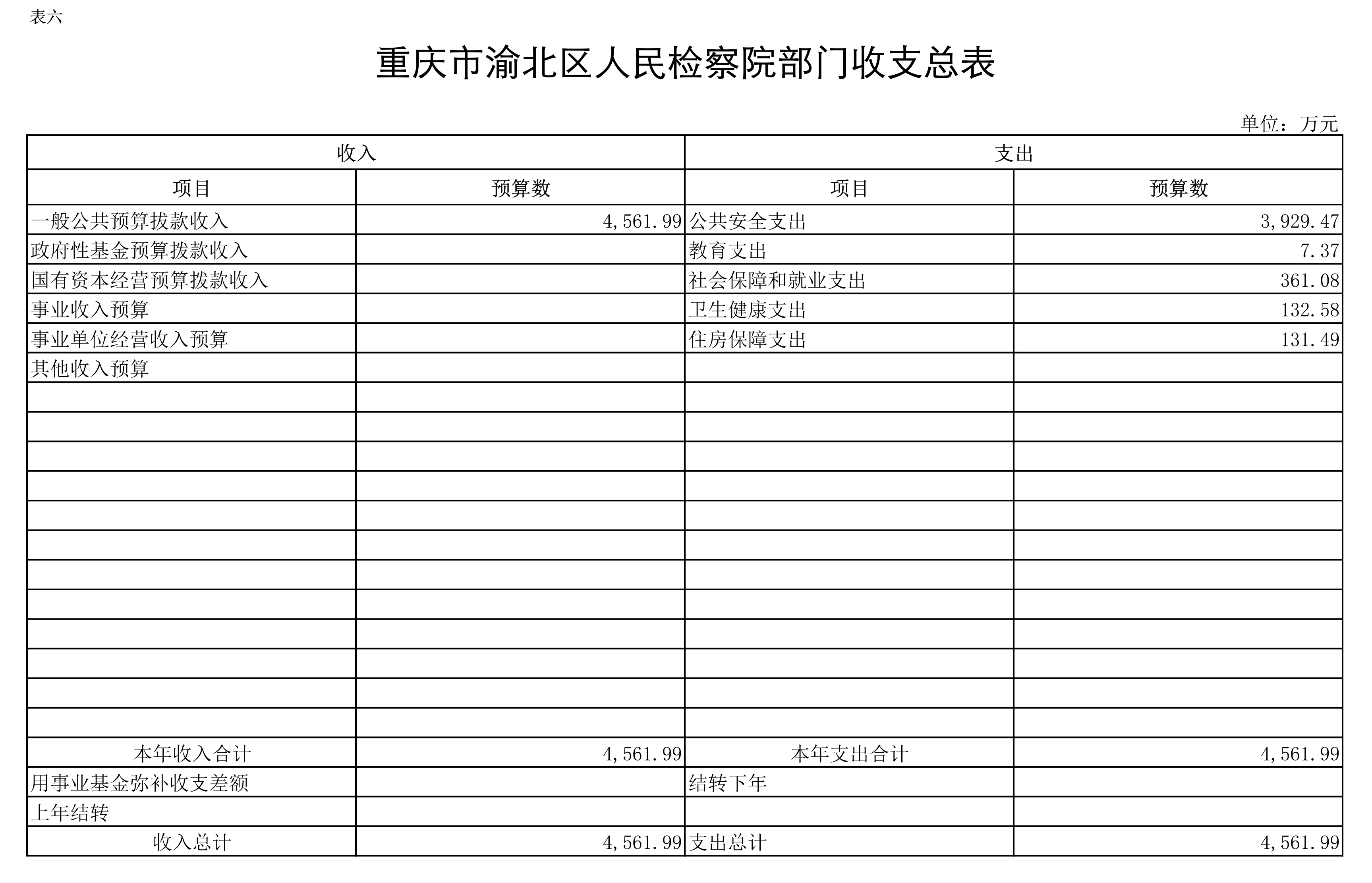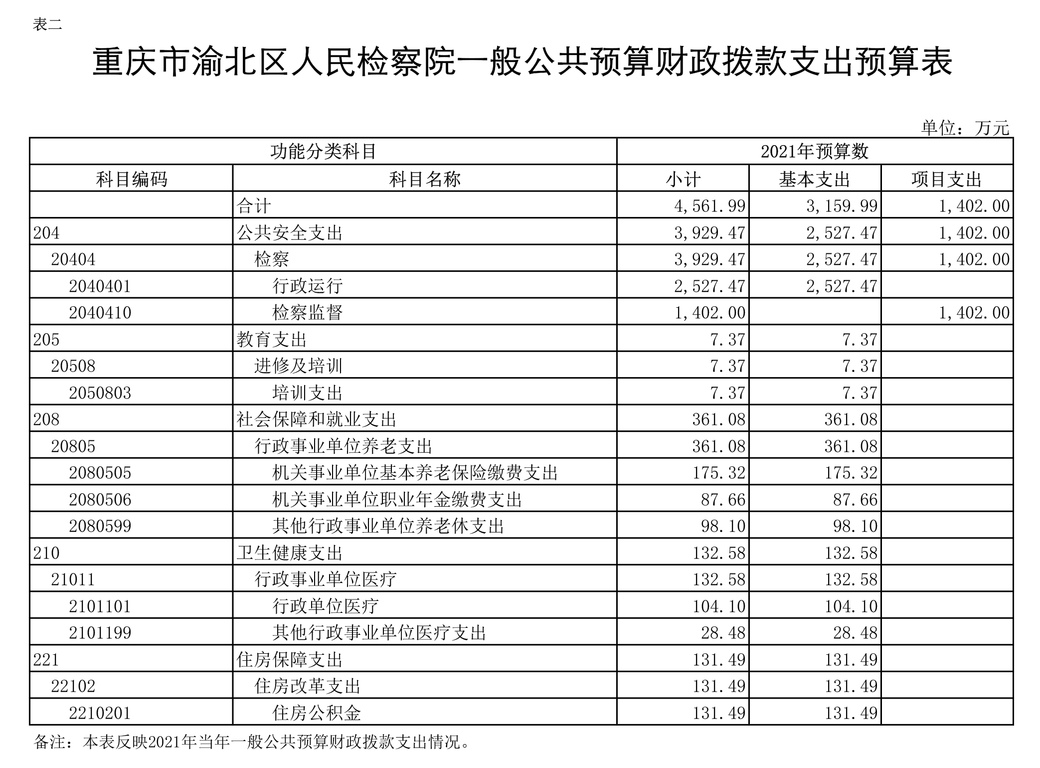 重庆市渝北区人民检察院2021年部门预算公开