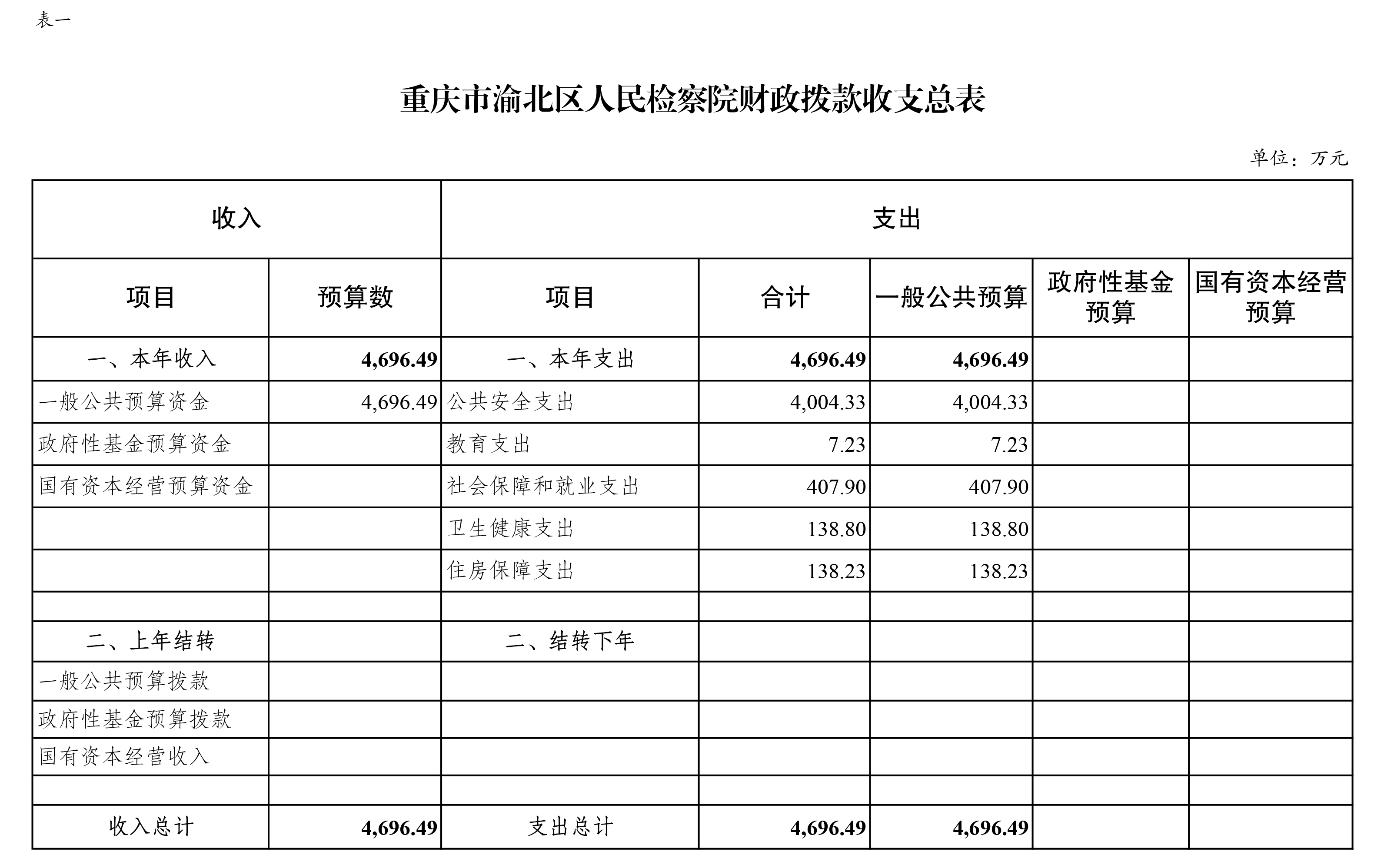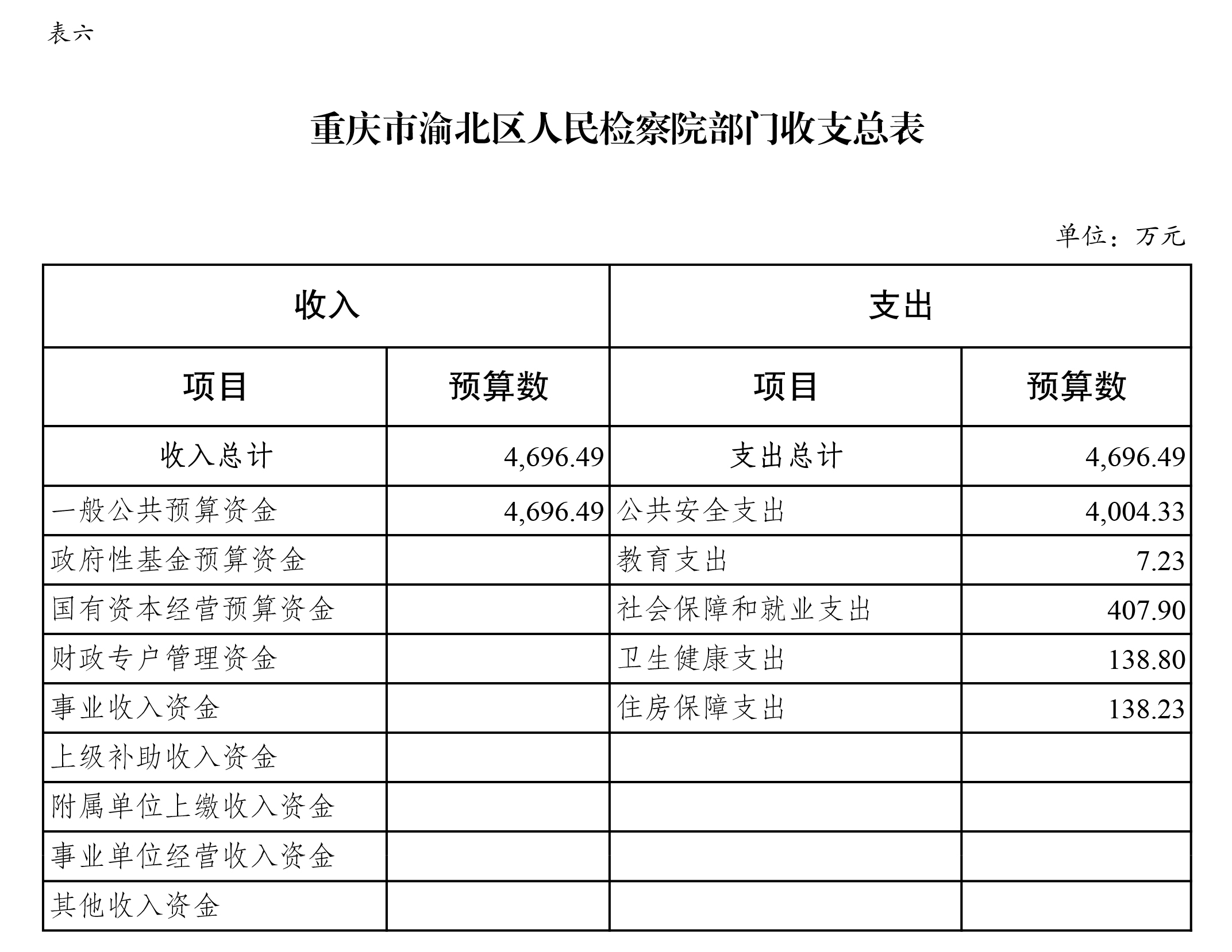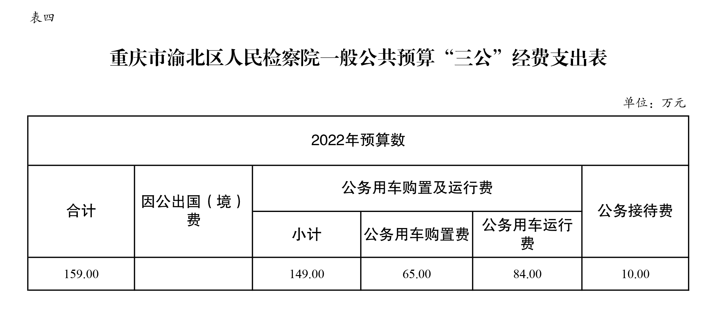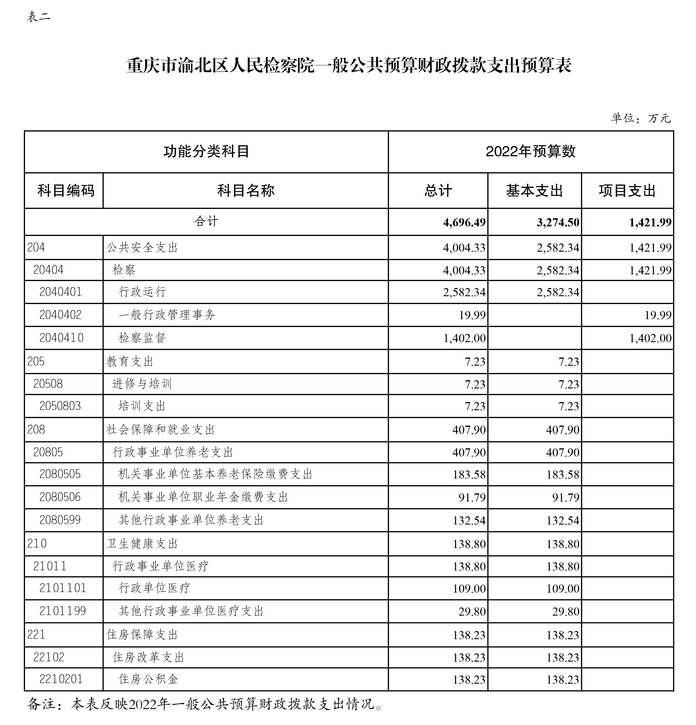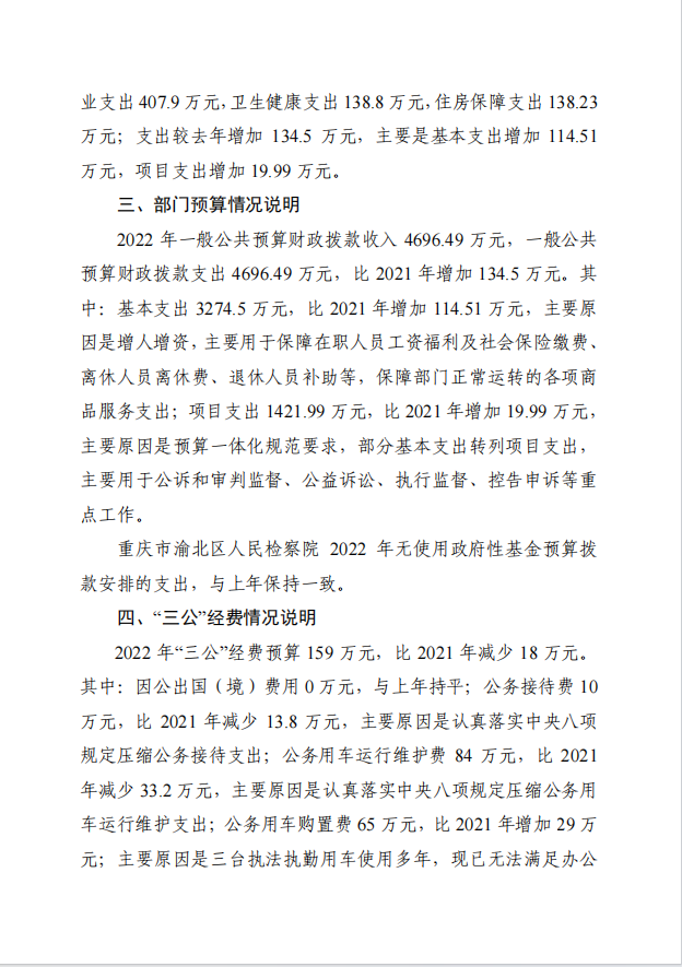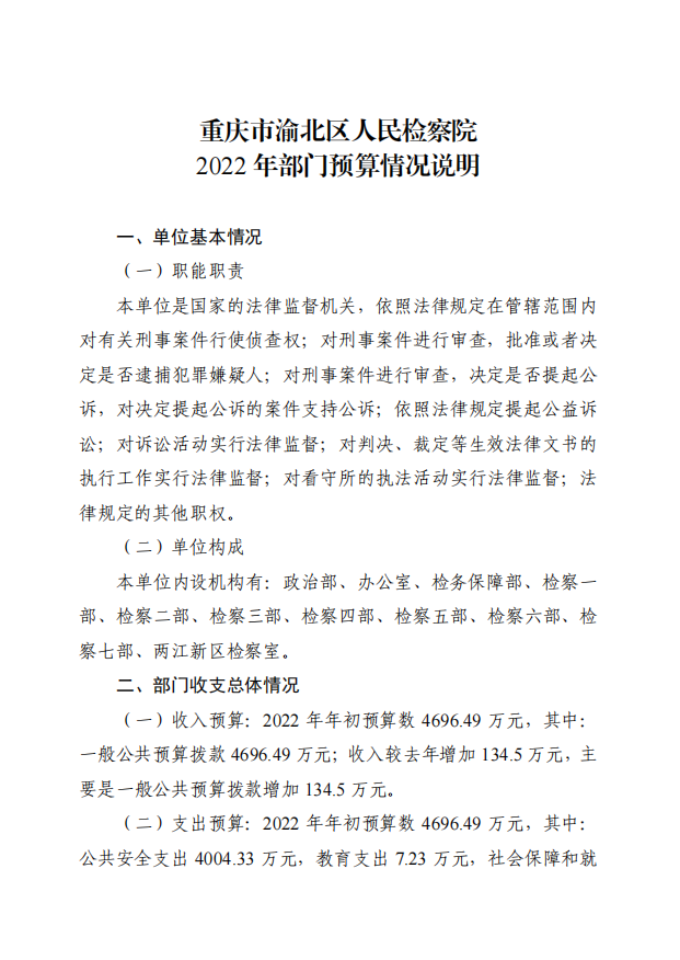 重庆市渝北区人民检察院2022年部门预算公开