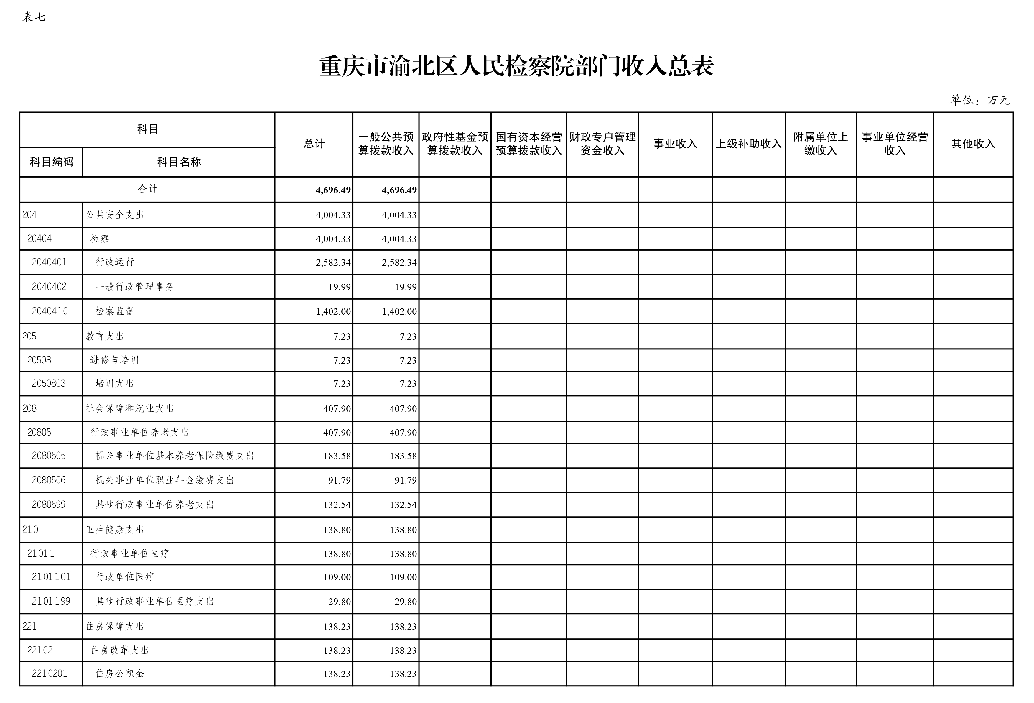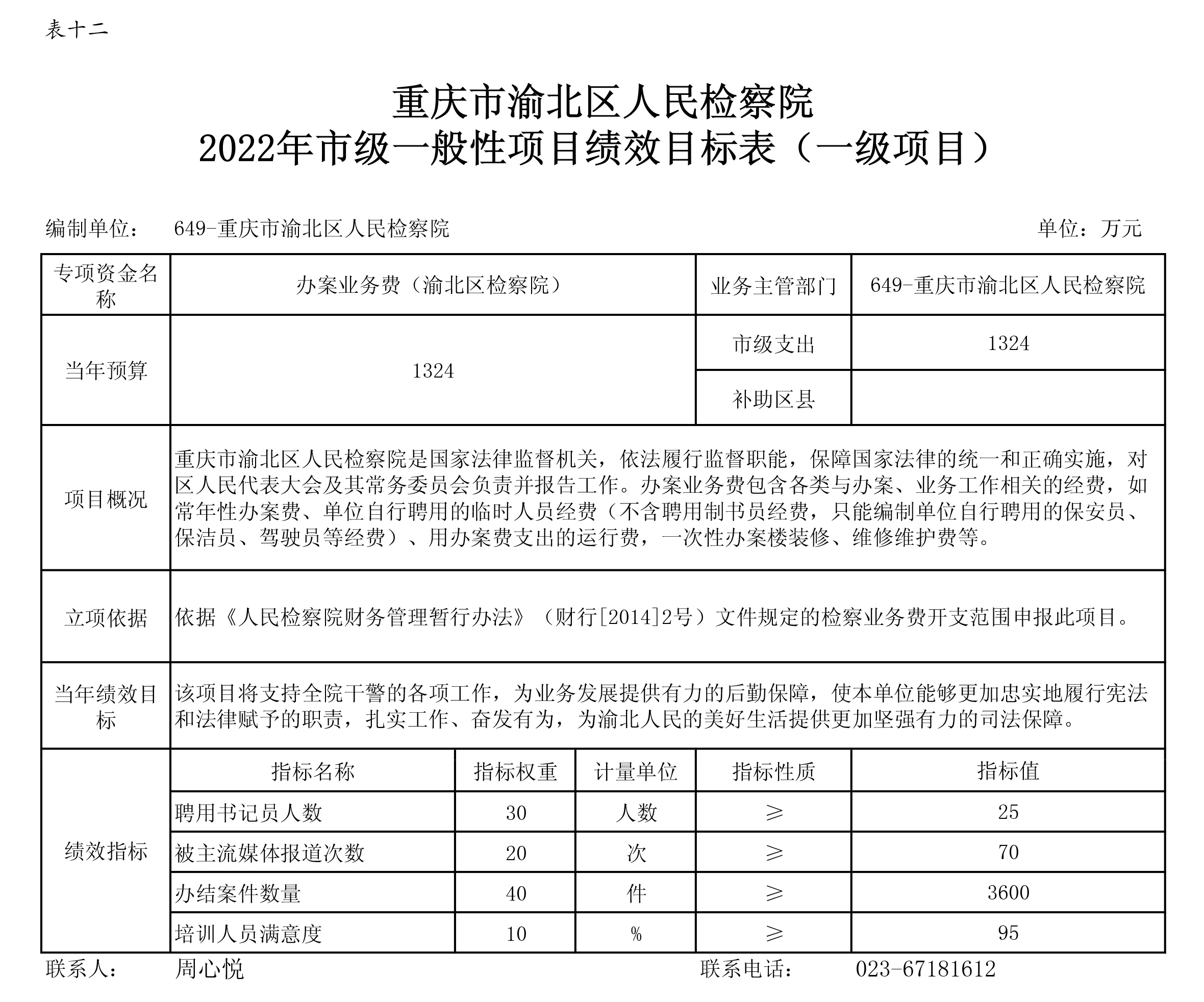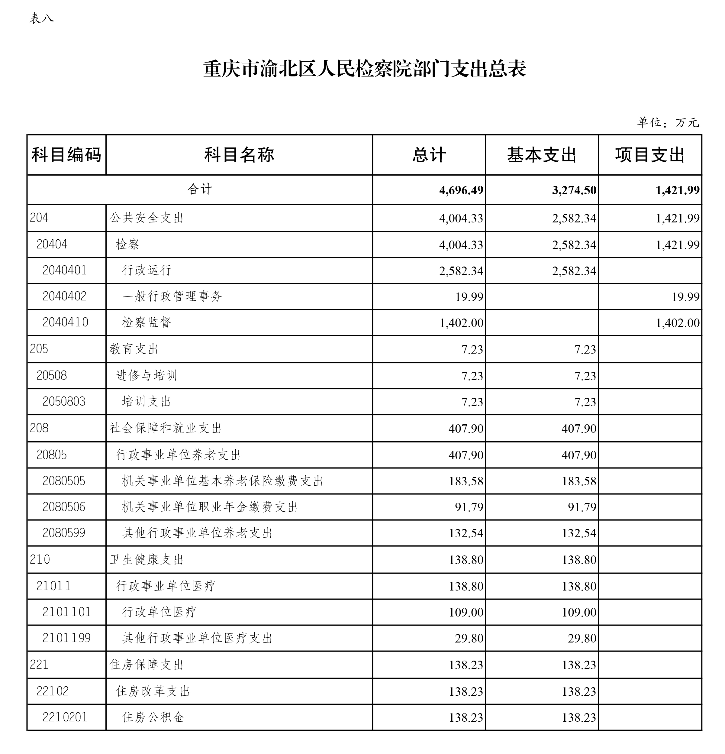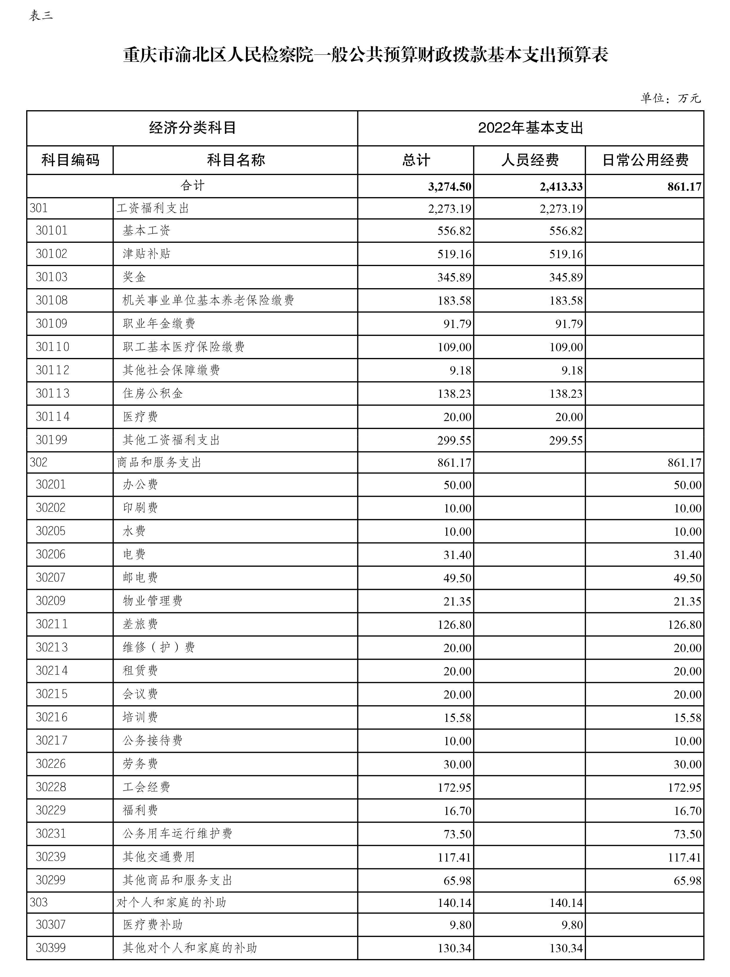 重庆市渝北区人民检察院2022年部门预算公开