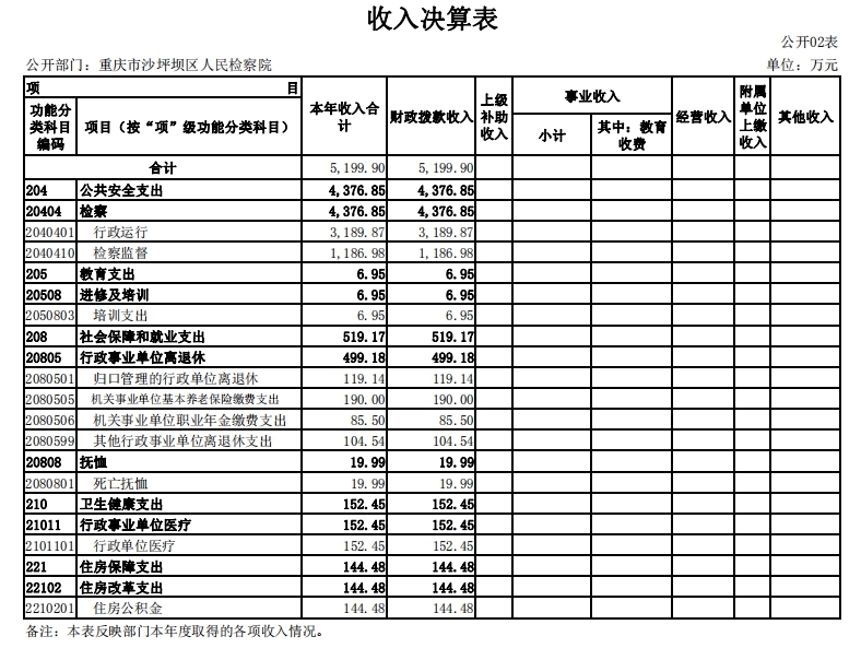 1.收入情况。2019年度一般公共预算财政拨款收入5,199.9万元,较上年决算数减少291.51万元,下降5.31%。主要原因是监察体制改革人员划转后支出减少。较年初预算数增加451.52万元,增长9.51%。主要原因是年中追加离退休健康修养费、一次性死亡抚恤金、退休“中人”费用(即退休人员一次性补贴)。此外,年初财政拨款结转和结余399.54万元。