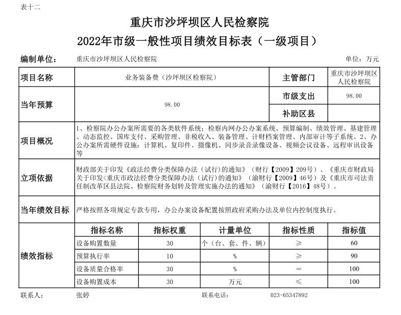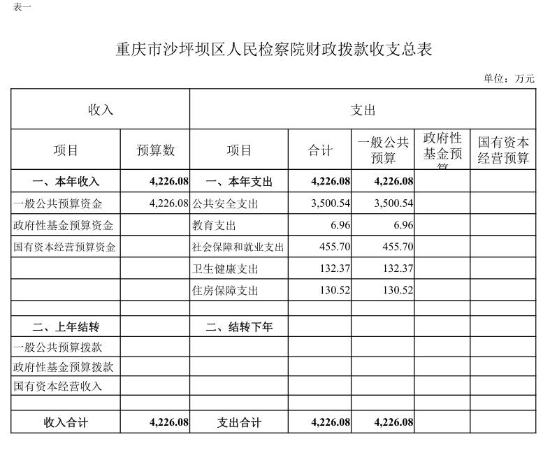 附:重庆市沙坪坝区人民检察院2022年部门预算相关表册(表一至表十二)