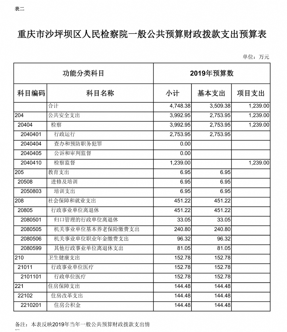 重庆市沙坪坝区人民检察院2019年部门预算情况说明