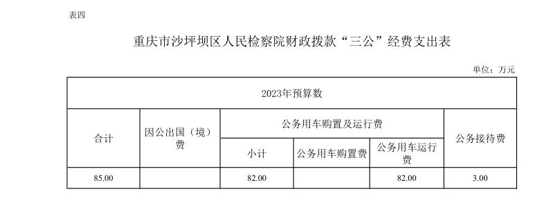 2023年财政拨款安排的“三公”经费预算85万元,与去年持平。其中:因公出国(境)费用0万元,与去年持平;公务接待费3万元,与去年持平;公务用车运行维护费82万元,比2022年增加26万元,主要原因是车辆老旧,维修成本增加,外出用车量增大,燃油费增加;公务用车购置0万元,比2022年减少26万元,主要原因是2023年无购车计划。