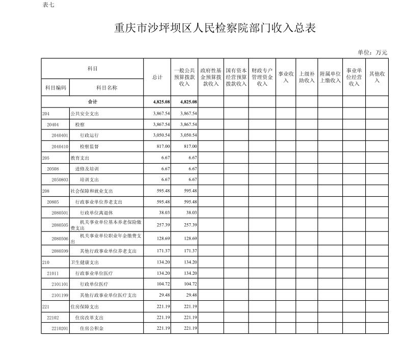 2023年一般公共预算财政拨款收入4825.08万元,一般公共预算财政拨款支出4825.08万元,比2022年增加599万元,其中:基本支出4008.08万元,比2022年增加852.4万元,主要原因是行政参公单位公用经费综合定额人均减少1万元,预算减少124.6万元;规范公务员津贴补贴改革后,公务员基础绩效奖和年度考核奖纳入年初预算编制,养老保险、职业年金、职工教育经费、福利费和住房公积金计提基数调整,年终一次性奖金规范编制等,共计增加801.61万元;未休假补贴等规范编制减少78.33万元;退休人员增加3人,增加13.72万元;聘用制书记员经费纳入基本支出编制,预算增加240万元;基本支出主要用于保障在职人员工资福利及社会保险缴费、离休人员离休费、退休人员补助等,保障部门正常运转的各项商品服务支出;项目支出817万元,比2022年减少253.4万元,主要原因是聘用制书记员经费纳入基本支出编制,预算减少240万元;减少检察公开听证室信息系统的建设项目,预算减少21.5万元;办公自动化运行维护费增加8.1万元;项目支出主要用于办案费、办公设备购置及其他项目支出等重点工作