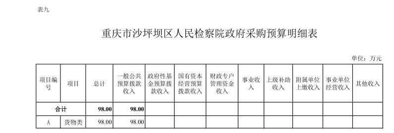 2.政府采购情况。本单位政府采购预算总额98万元,其中:政府采购货物预算98万元,政府采购工程预算0万元,政府采购服务预算0万元。一般公共预算拨款政府采购98万元,其中:政府采购货物预算98万元,政府采购工程预算0万元,政府采购服务预算0万元。