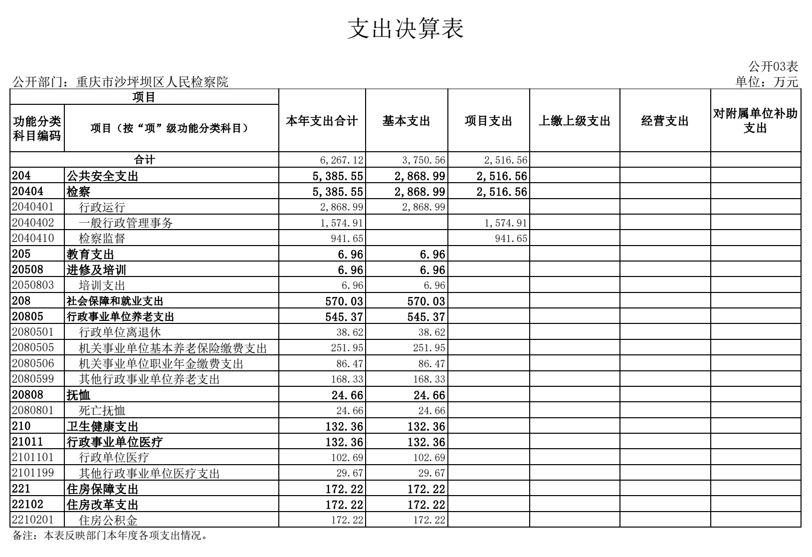 重庆市沙坪坝区人民检察院2022年度项目支出绩效自评表(一级项目) |