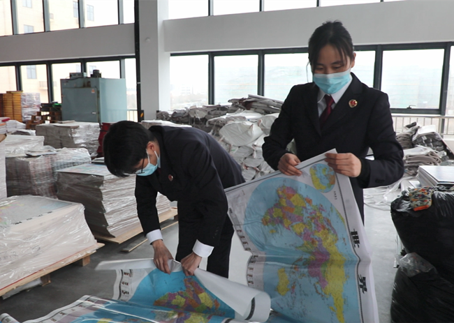假地图买卖的渠道集中在小商品市场直接批发提货和线上网店交易,涉案数量巨大,给办案带来了一定难度。2021年4月,海盐县检察院依法提前介入,迅速成立以分管副检察长为组长的专案组,阅卷核查证据,全面掌握案情。