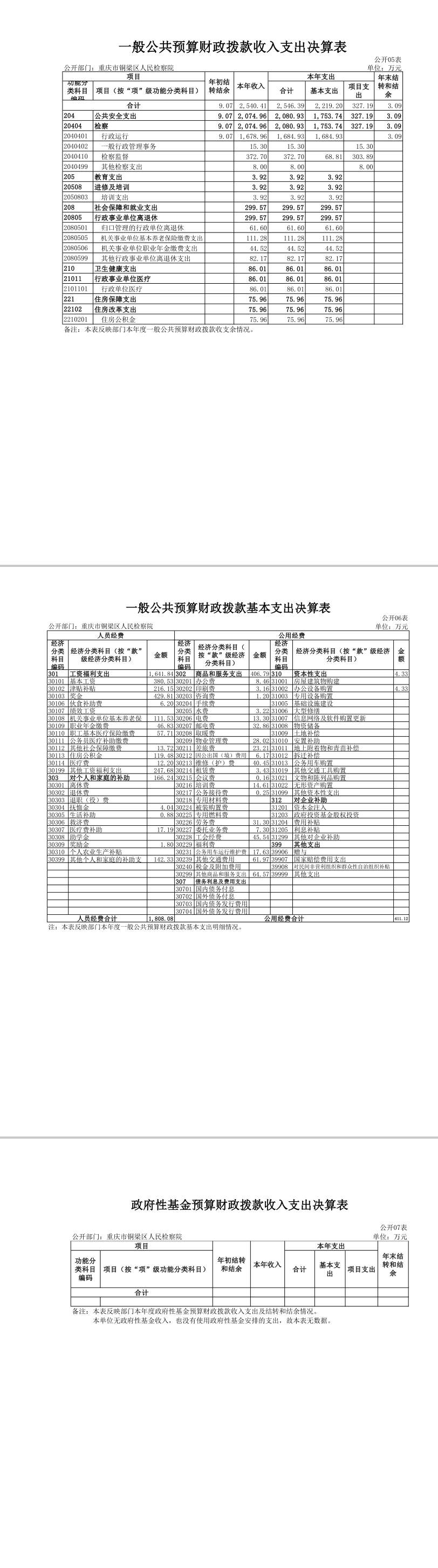 3.支出情况。2019年度支出合计2,610.65万元,较上年决算数增加399.43万元,增长18.06%,主要原因是在职人员的正常增资、目标考核奖增加及退休人员的健康修养费增加。其中:基本支出2,219.20万元,占85.01%;项目支出391.45万元,占14.99%。