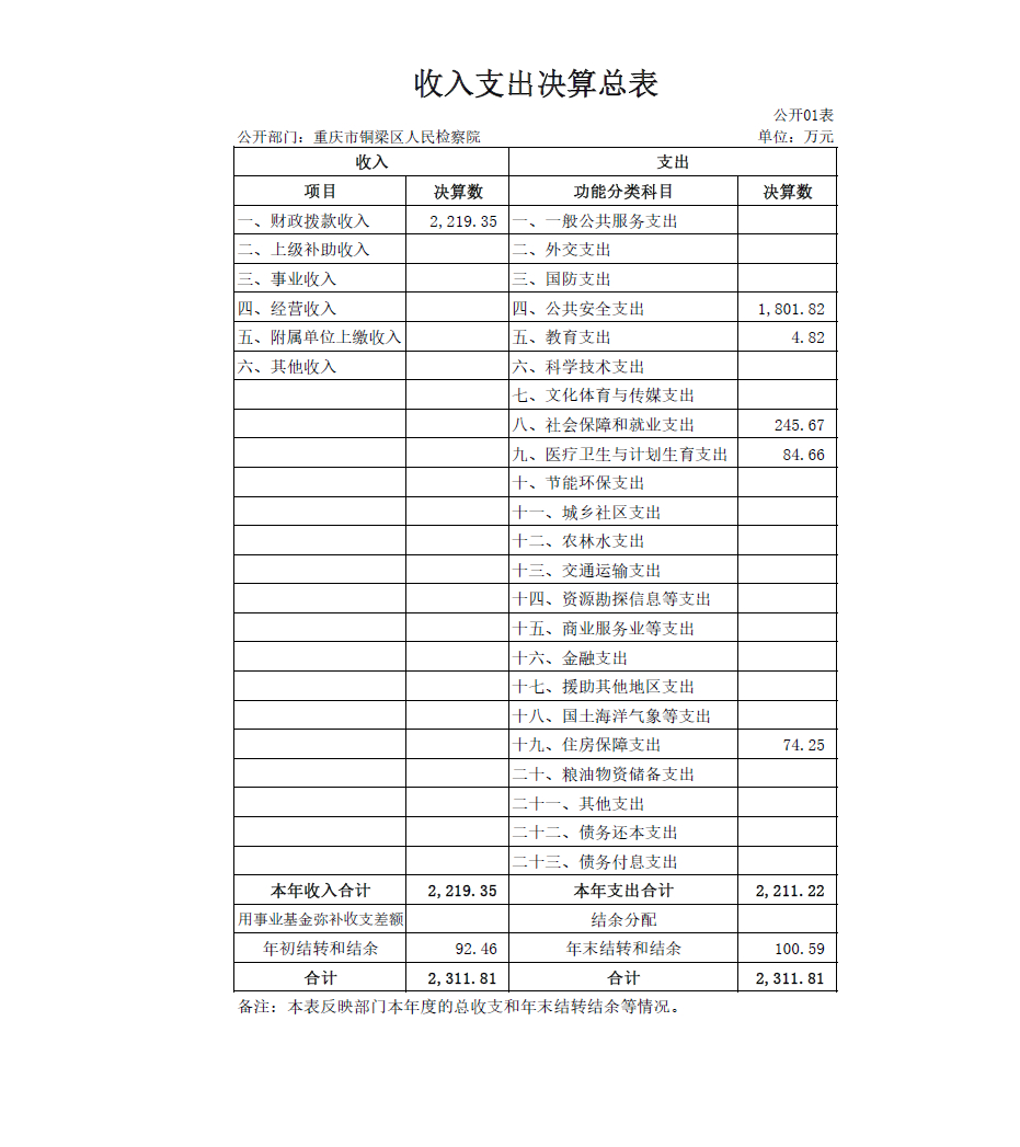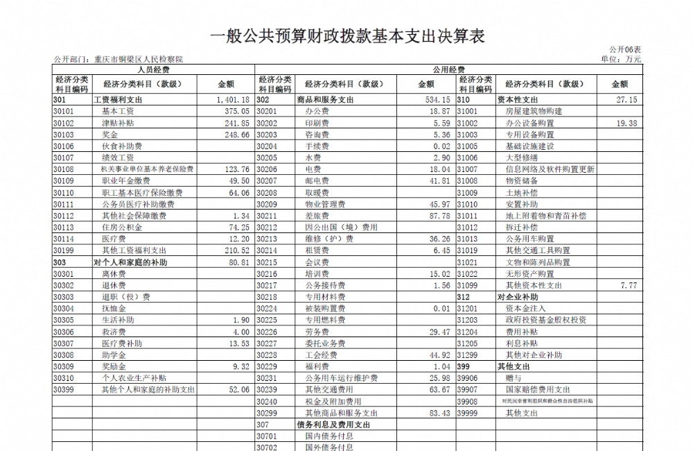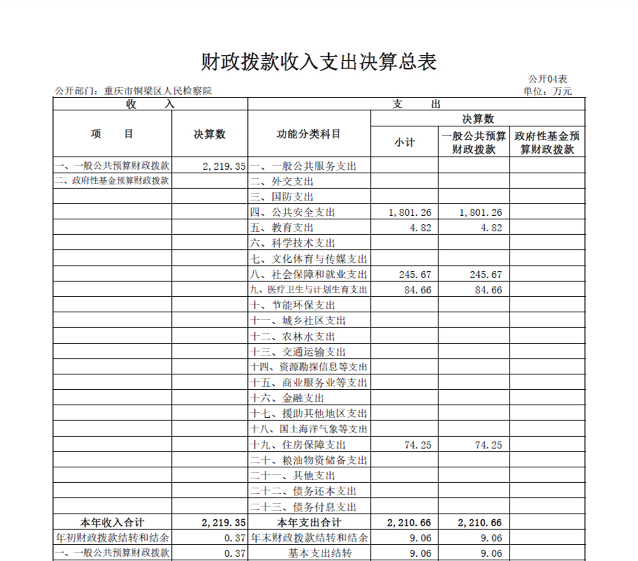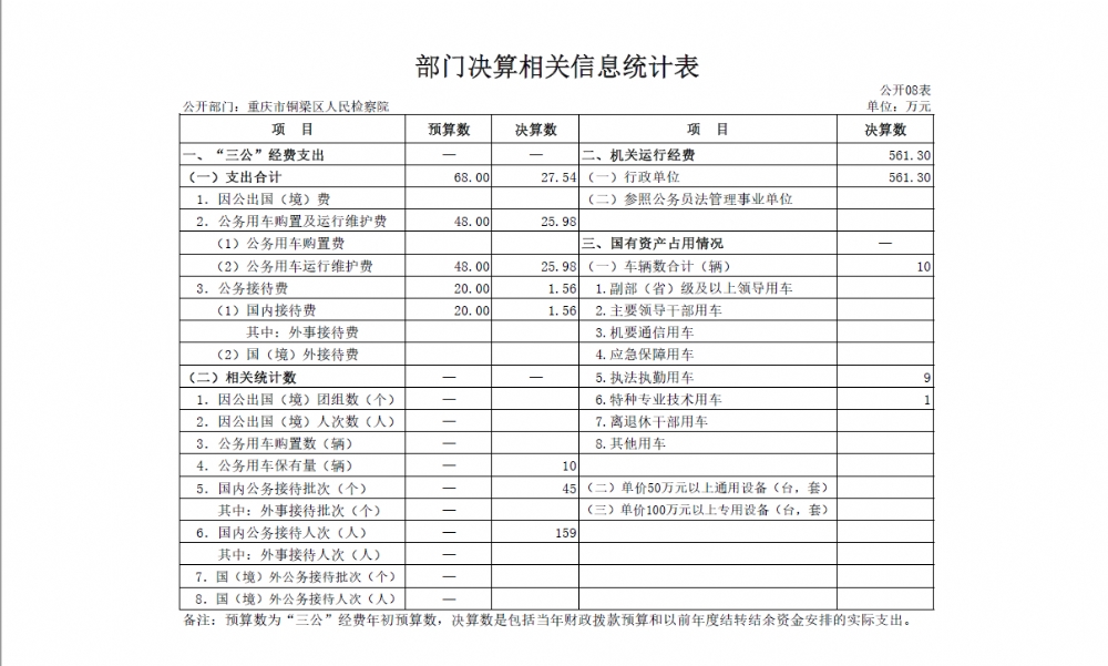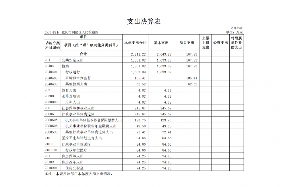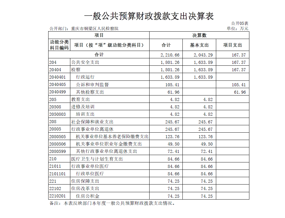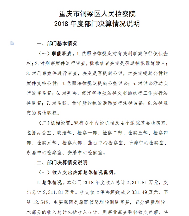 重庆市铜梁区人民检察院2018年决算公开说明及表格