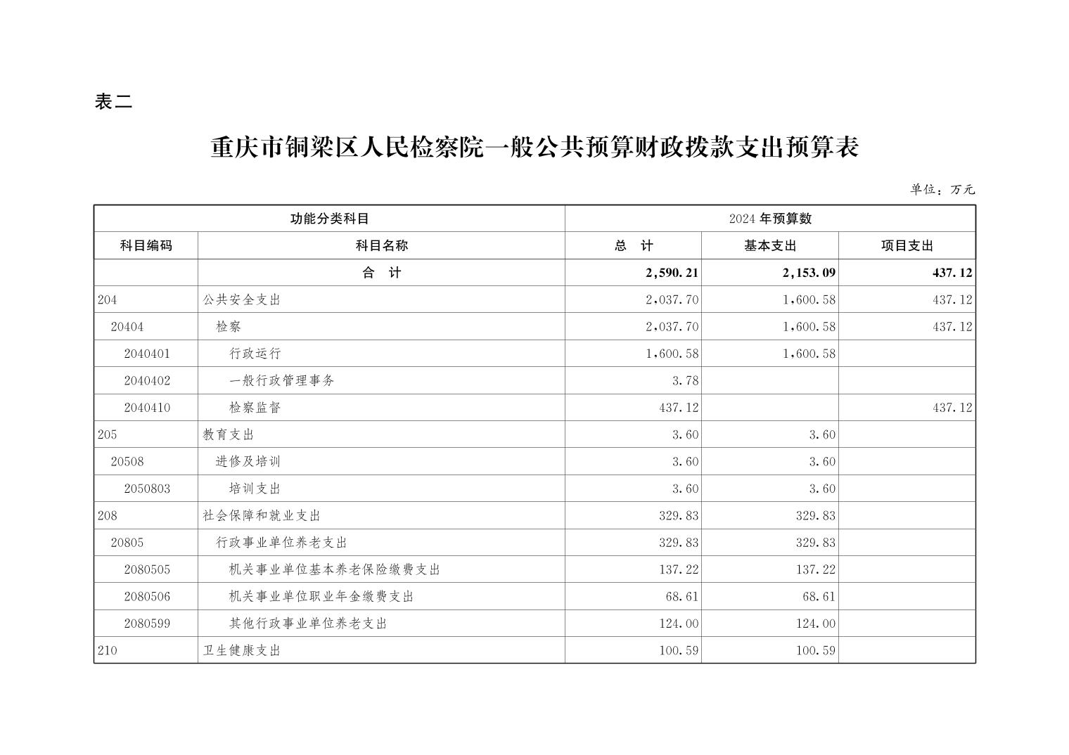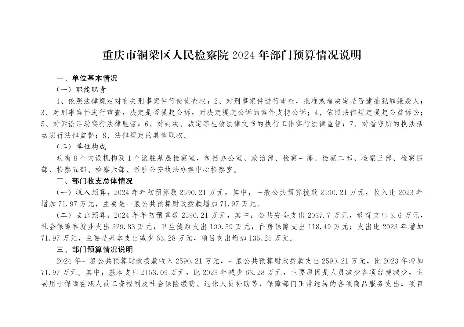 重庆市铜梁区人民检察院2024年部门预算公开