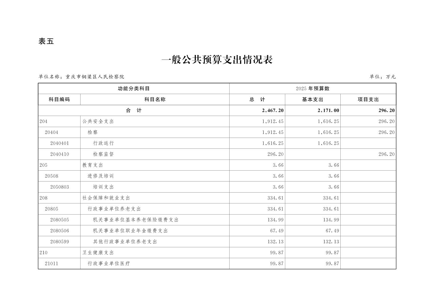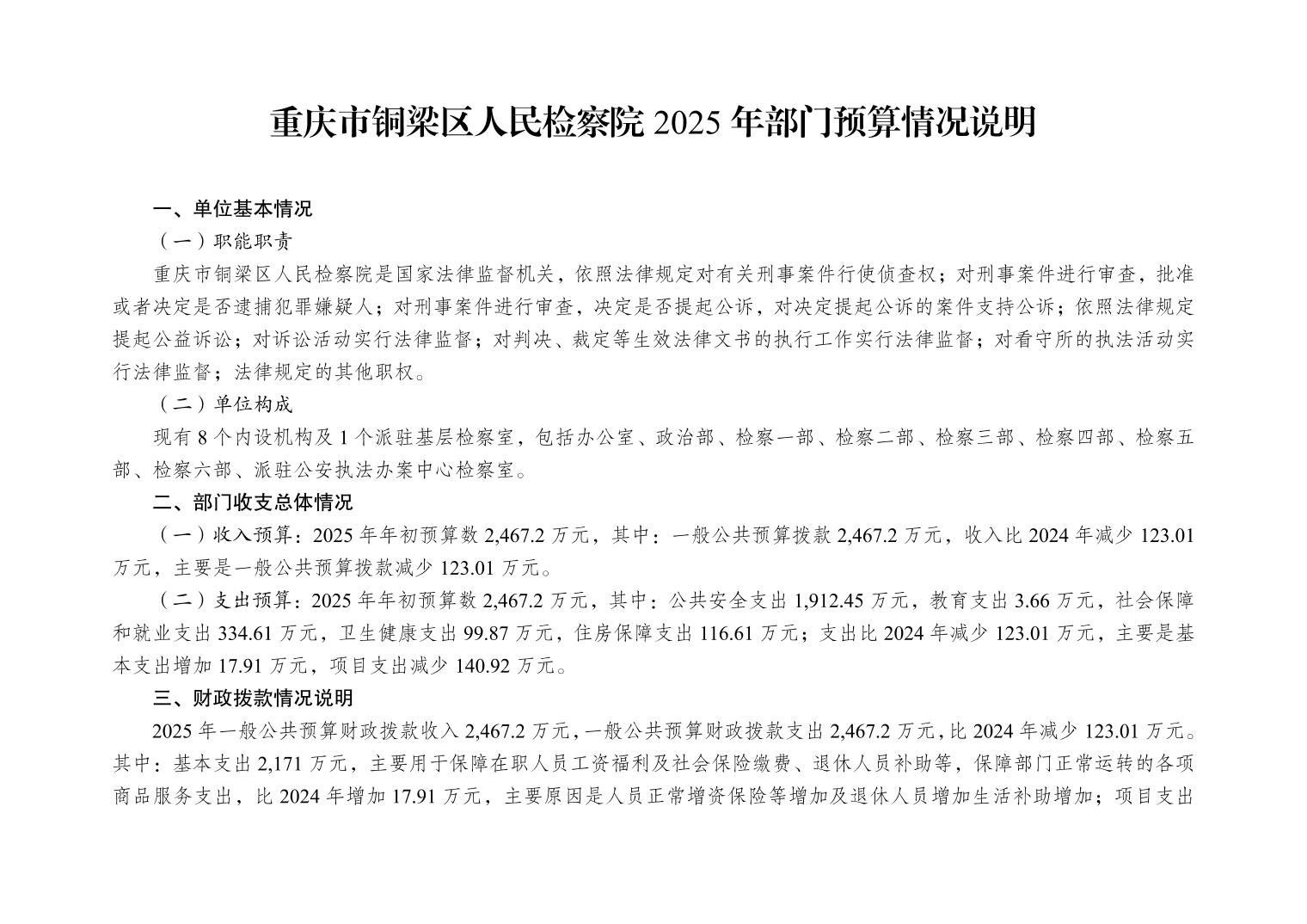 重庆市铜梁区人民检察院2025年部门预算公开