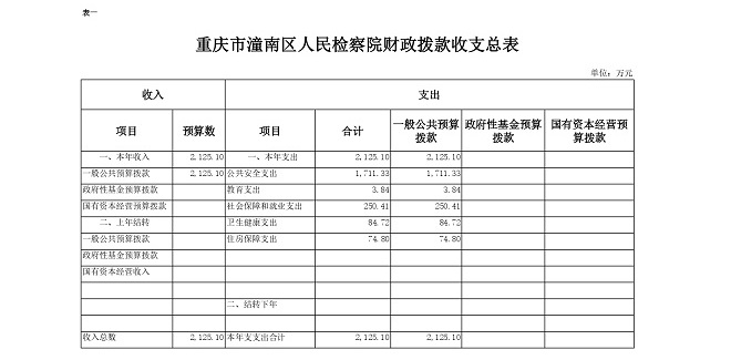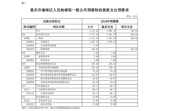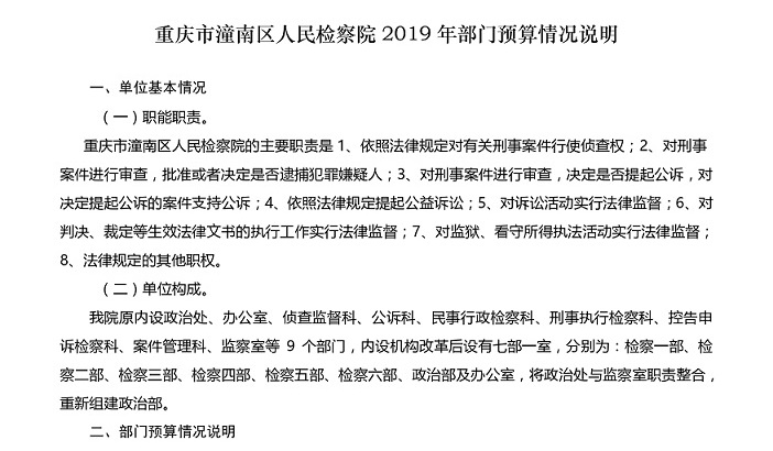 重庆市潼南区人民检察院2019年部门预算公开