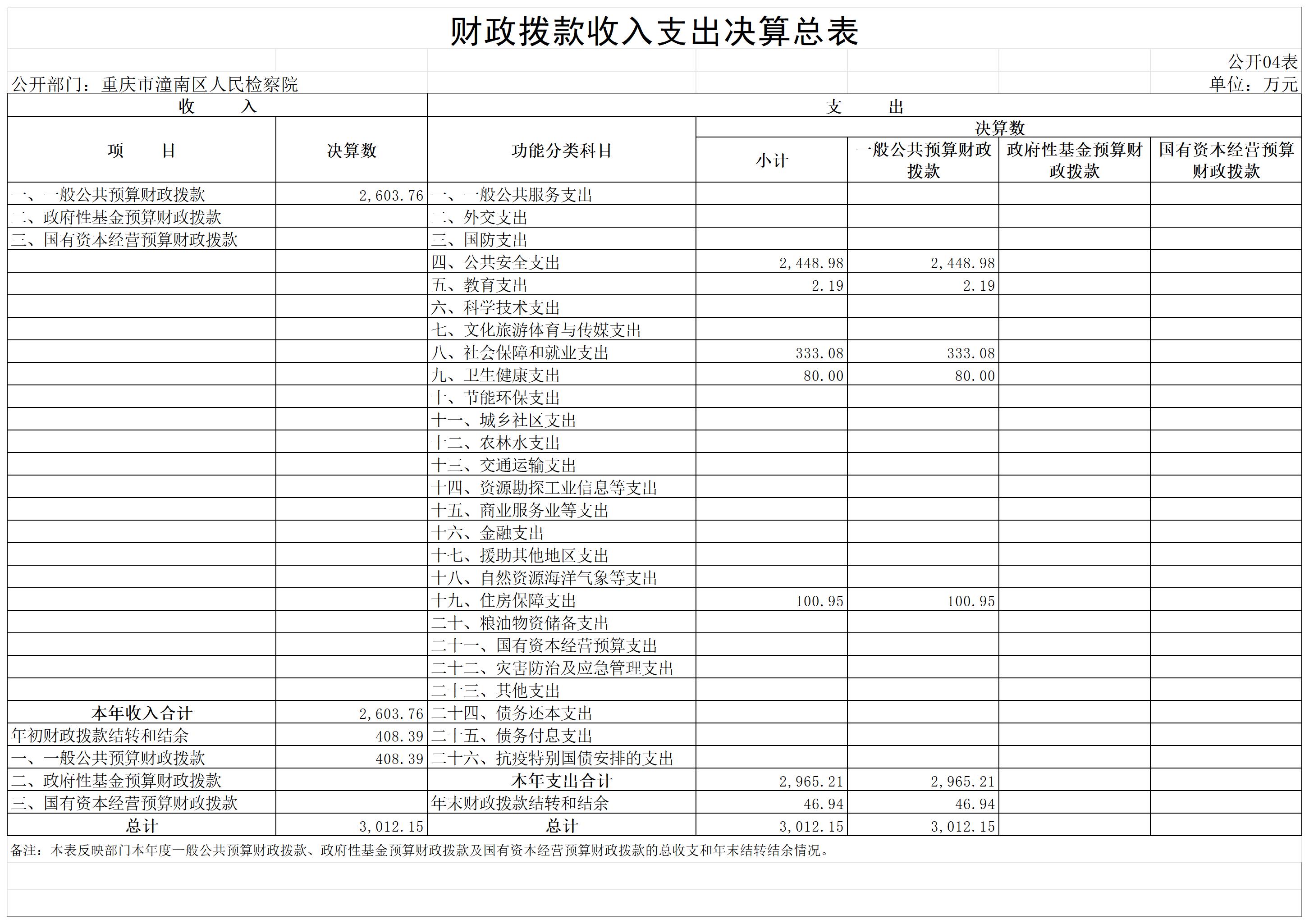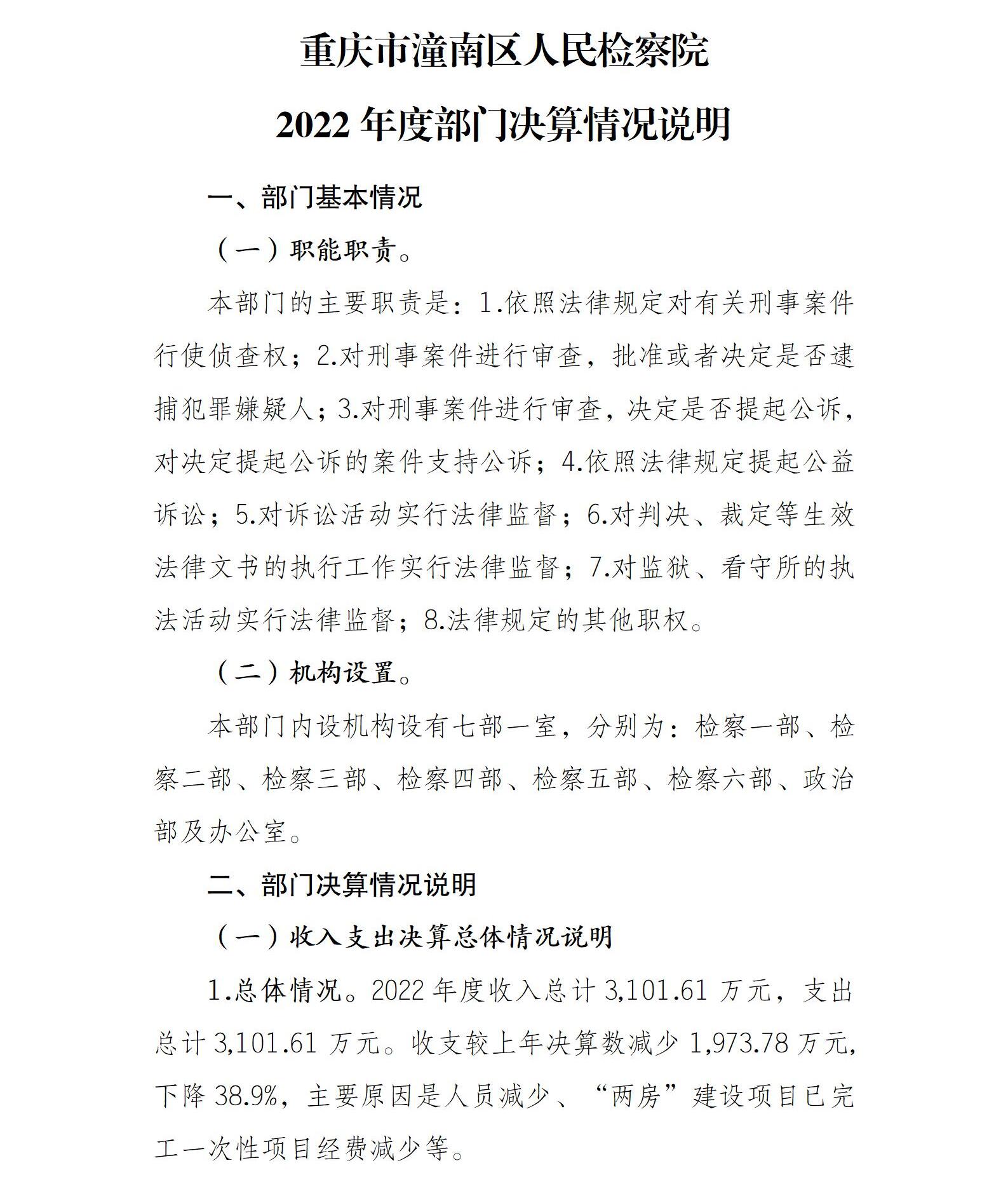 重庆市潼南区人民检察院2022年部门决算公开