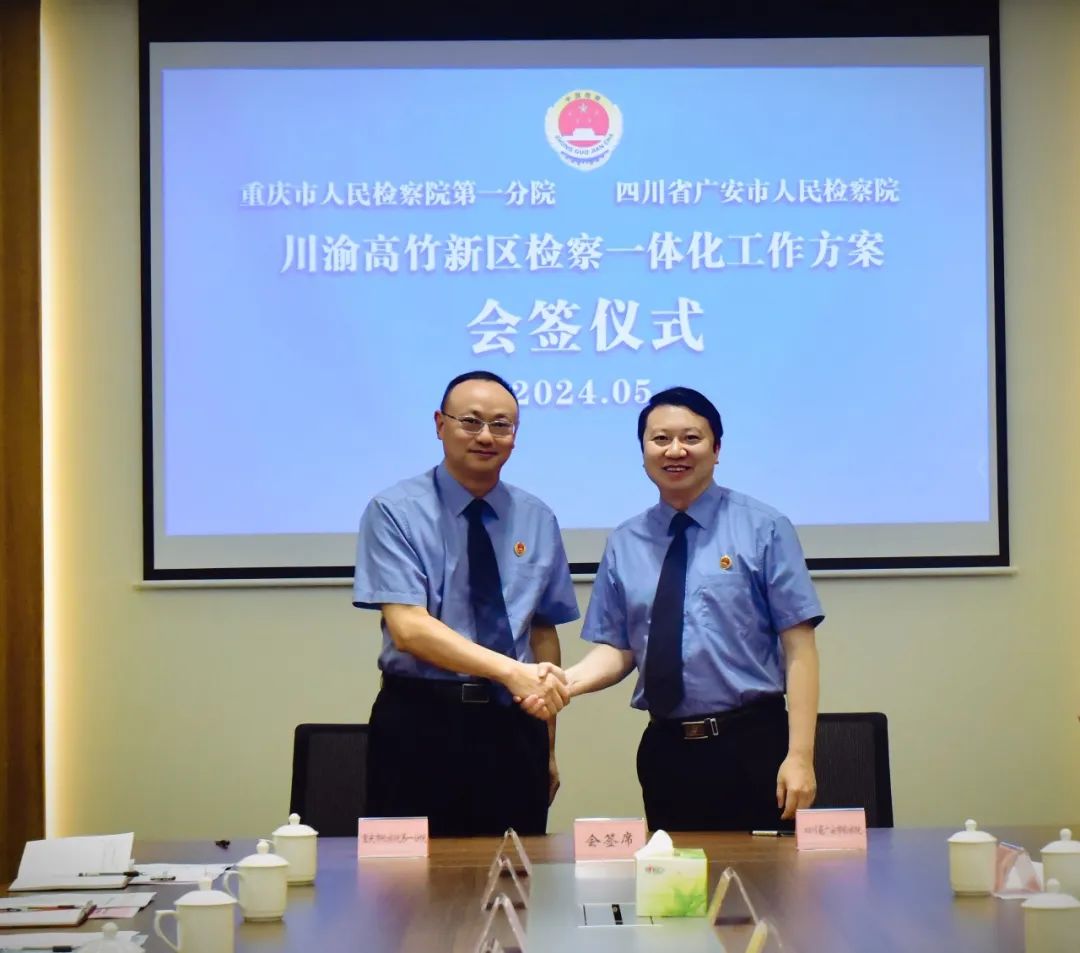 两院联合成立了“川渝高竹新区检察一体化领导小组”,会签了《关于进一步加强川渝高竹新区检察一体化工作方案(试行)》。《方案》要求,两院要共组领导机构、共设检察平台、共组业务专班,实现组织保障一体化;以“一个窗口”受理、“一个团队”办理、“一个标准”司法的实质化运行,实现检察履职一体化;通过队伍共建、机制共建、品牌共建,实现基础建设一体化,真正做实川渝高竹新区检察一体。